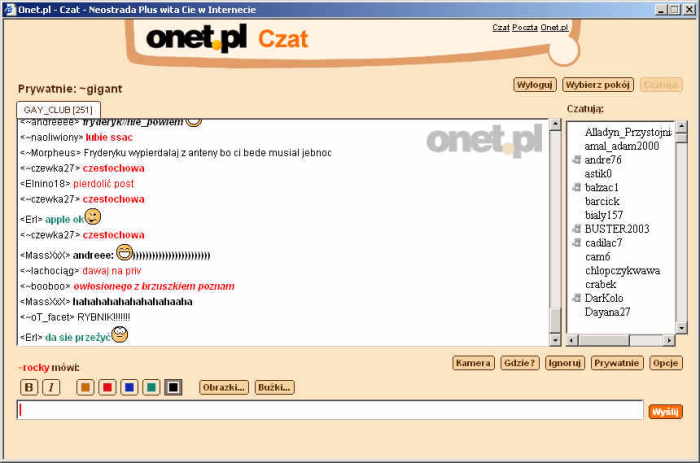 Więc od około 2000 roku prowadziłem wirtualny klub dla osób o odmiennej orientacji seksualnej pod nazwą GAY_CLUB w portalu www.onet.pl działu czatu pod adresem www.czat.onet.pl